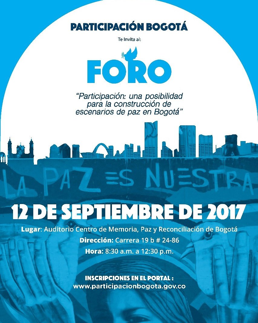 Foro 'Participación, una posibilidad para la construcción de escenarios de paz en Bogotá' en @centromemoria bit.ly/2eNVJxr